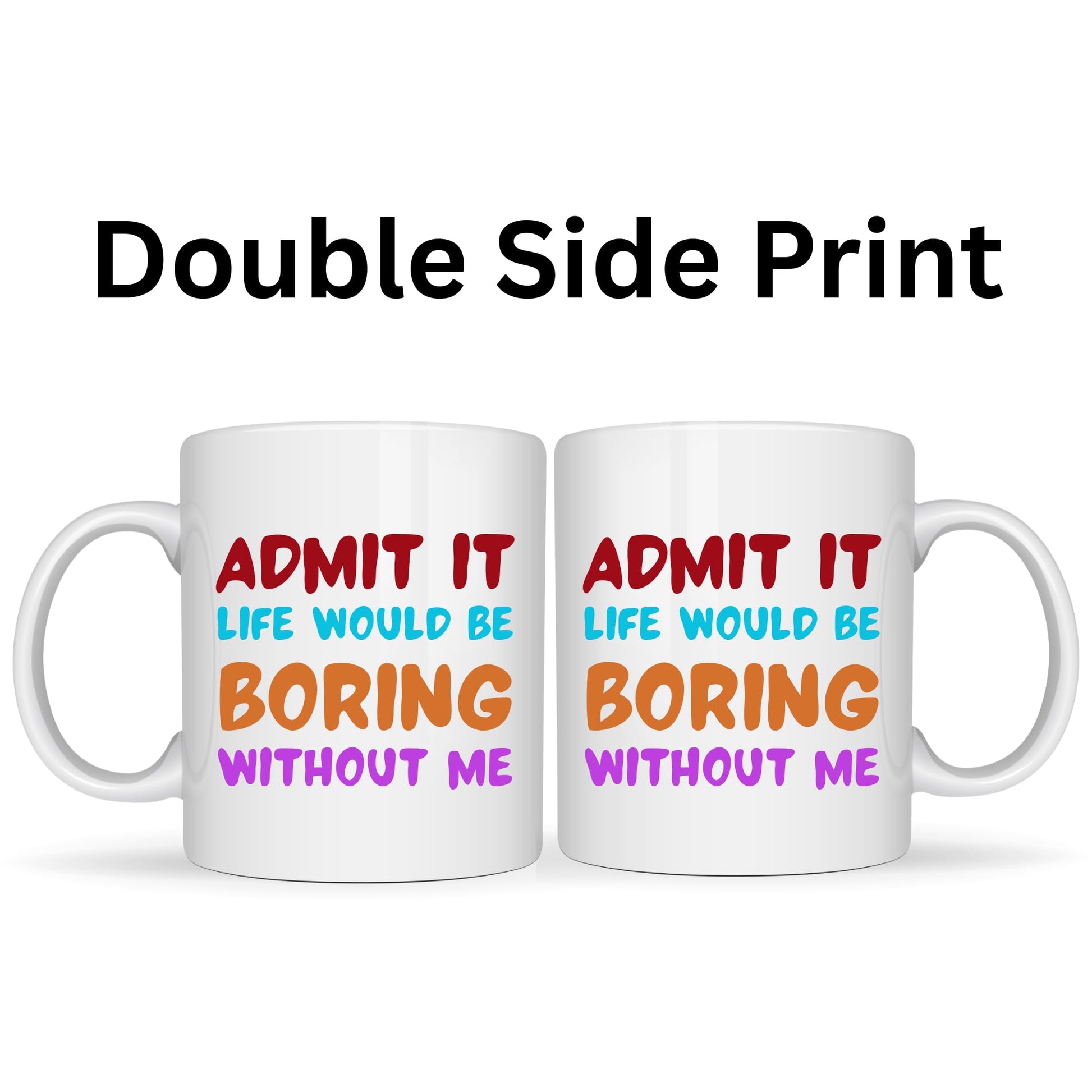 Make every coffee break more entertaining with this bold and humorous “Admit It, Life Would Be Boring Without Me” coffee mug. Designed for people who love confidence, sarcasm, and playful humor, this mug is perfect for adding personality to your desk, kitchen, or gift collection. Crafted from high-quality ceramic in a clean white finish, this mug features a comfortable 11oz (325ml) capacity for coffee, tea, or hot chocolate. With a solid 500g weight and a compact size of 8.26 cm width × 9.52 cm height, it is ideal for daily use while still feeling special. Built for convenience, this mug is dishwasher safe and microwave safe, making it both practical and durable. Friendly in tone and highly giftable, it’s a perfect choice for coworkers, friends, and anyone who enjoys witty quotes with their favorite drink.